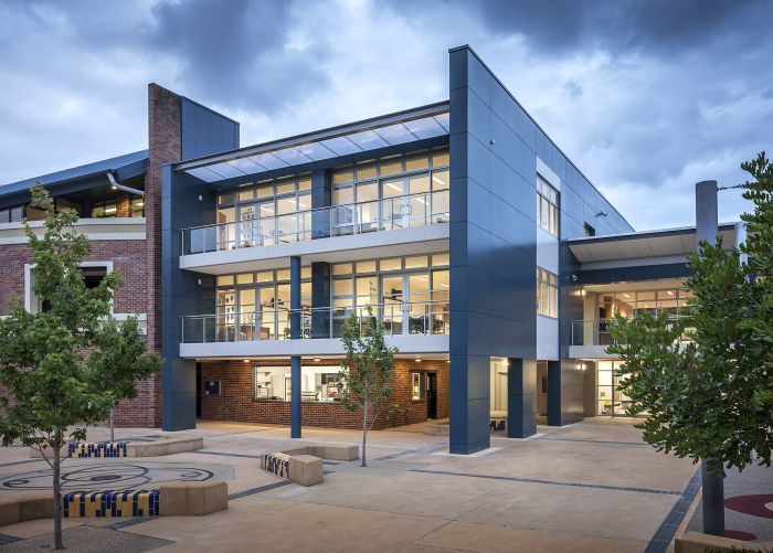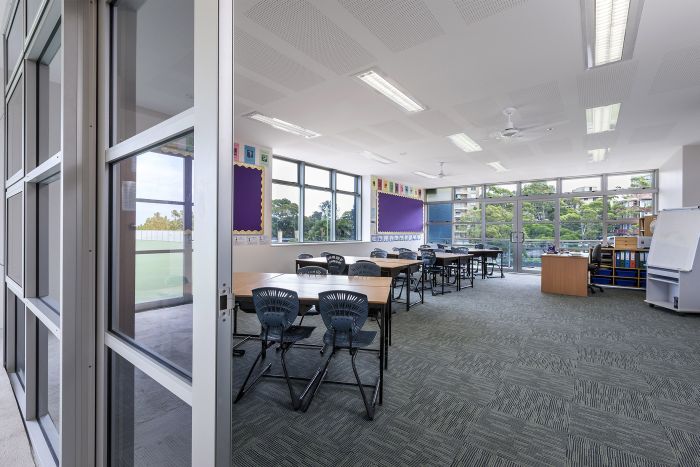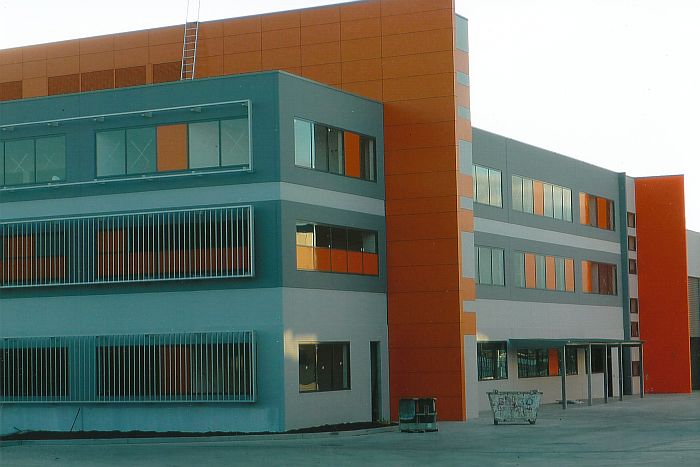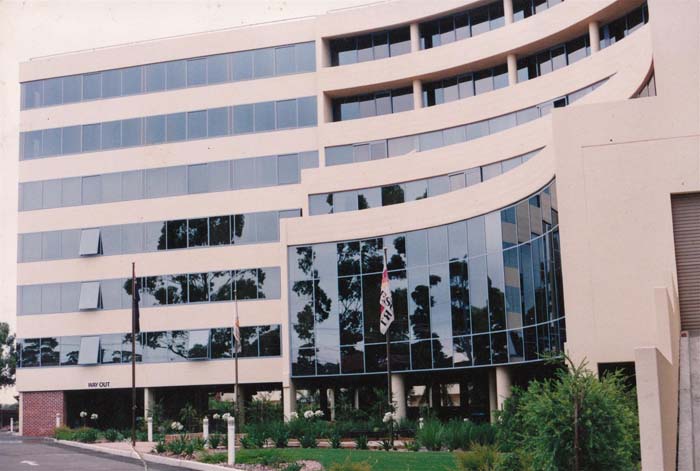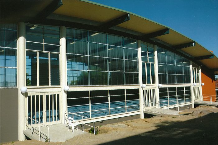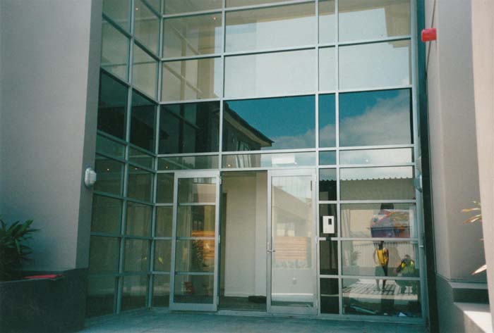 Main entry and curtain wall using Alspec "Macarthur" series framing and "Swan" series hinged doors.